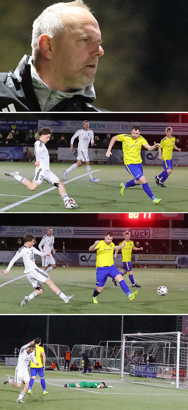 Hälfte zwei begann mit einem Paukenschlag: Trommler schnappte sich die Kugel im Mittelfeld, kurvte nach innen und nahm sich aus der zweiten Reihe ein Herz. Unhaltbar für Vollmer schlug das Leder im Giebel ein – die Führung für die Blau-Gelben, die allerdings danach in Passivität verfielen, wodurch sich die Equipe von Sascha Mühlmann Vorteile erarbeitete. Zuerst kam Nümbrecht noch mit einem blauen Auge davon, als Ali Can Gültekin eine Dabringhausen-Hereingabe völlig unbedrängt an die Querstange köpfte, doch kurz darauf war es so weit: Nach einem weiten Zuspiel von Vollmer wurde der Ball zu Dabringhausen weitergeleitet, der von halbrechts in den Strafraum eindrang und Schoepe mit einem Schuss ins kurze Eck düpierte – 1:1.