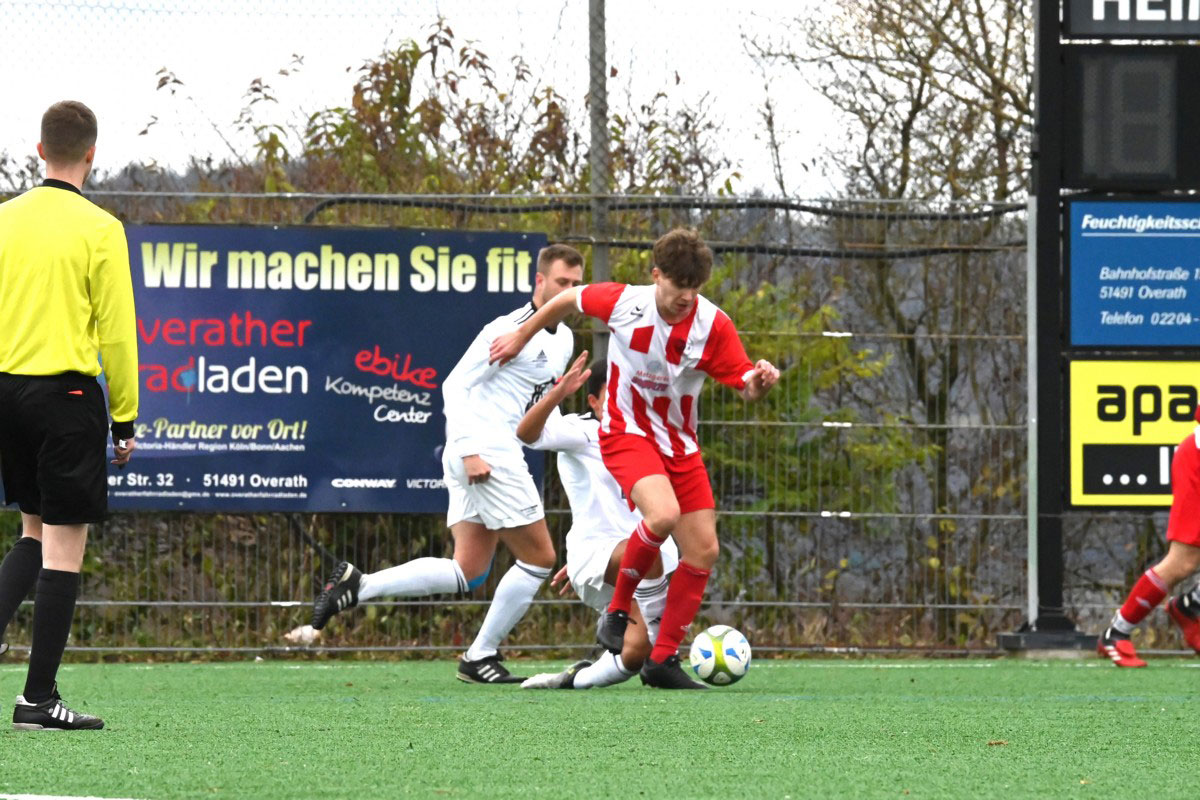 Die Tabellenführung ist im Moment keine Garantie für Siege. Dieses Mal musste Jan Wellem aus Bergisch Gladbach den Platz an der Sonne nach nur einer Woche wieder räumen. Obwohl spielbestimmend, kam das Team von Trainer Heinz-Peter Müller nicht über eine Remis gegen die Lindlarer Erstvertretung hinaus. Die Mannschaft von Trainer Norbert Scheider lag durch Anton Zeka mit 1:0 in Führung, musste aber noch den Ausgleich durch Tizian Otto hinnehmen. „Wir kommen nicht richtig in die Box und lassen vorne drin den letzten Willen vermissen“, ärgerte sich Müller über die fehlende Zielstrebigkeit. „Nur mit Schönspielerei gewinnt man keine Spiele.“ Scheider war dagegen zufrieden mit der Punkteteilung. „Die Mannschaft hat das gut gemacht, war bissig in den Zweikämpfen und hat wenig zugelassen.“