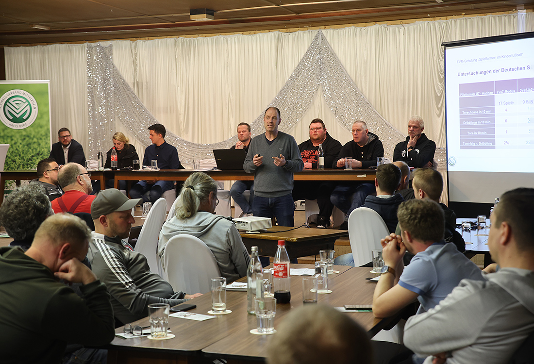 Üblicherweise liegt bei den Staffeltagen des Fußballkreises Berg die Würze in der Kürze, die gestrige Jugendleitersitzung in Vilkerath entwickelte sich jedoch zu einer längeren Veranstaltung. Nach rund drei Stunden beendete der Jugendausschussvorsitzende Thomas Engelberth die Sitzung. Im Mittelpunkt standen die neuen Spielformen des Kinderfußballs. Zu diesem Thema war FVM-Jugendbildungsreferent Oliver Zeppenfeld vor Ort, um das Für und Wider in einem etwa 45-minütigen Vortrag zu beleuchten. „Er hat das sehr gut rübergebracht und viele Zweifel und Bedenken zerstreut“, meinte Engelberth.