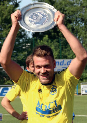 [Oliver Rempel mit der Meisterschale im Jahr 2015, er trainiert die 1. Mannschaft in der kommenden Saison.]