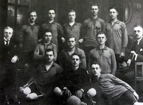 [Eines der ersten Mannschaftsfotos, aufgenommen im damaligen Vereinslokal Römer.]