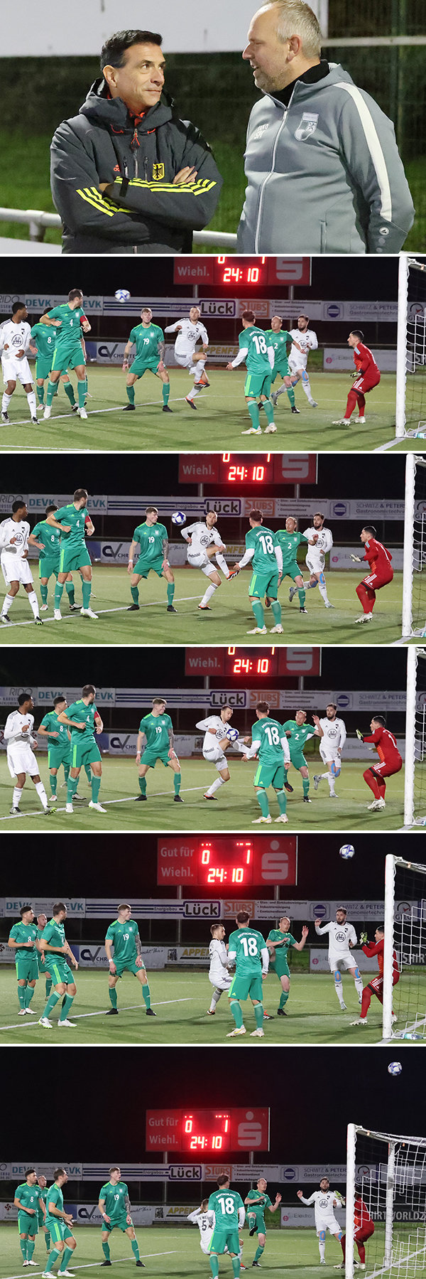 Mühlmann wechselte genauso wie sein Gegenüber in der ersten Drittelpause munter durch und fortan waren es die Hausherren, die den Spielrhythmus bestimmten. Andi Sadrija tauchte völlig frei vor Zott auf und scheiterte am Goalie (36.). Dann köpfte Collins Ihekaire im Anschluss an eine Ecke das 1:1. Die Wiehler hatten nun deutlich Oberwasser, schlugen jedoch zunächst kein Kapital aus ihrem Chancenplus. Zott zeigte gegen Marvin Bollow und Ihekaire die nächsten Glanzparaden (44., 52.), war wenig später aber machtlos, als Louis Usko einen Freistoß aus 20 Metern über die Mauer hinweg unters Tordach hämmerte – mit Ansage vom Trainer. „Wenn er die Dinger da kriegt, macht er neun von zehn rein“, so Mühlmann über die Fertigkeiten seines Verteidigers bei ruhenden Bällen in Strafraumnähe.