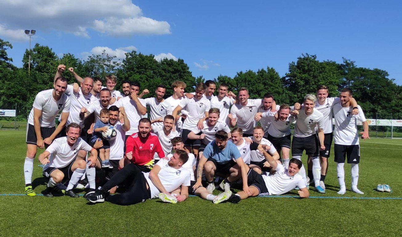 Auf allen anderen relevanten Plätzen hatten die Wiehler einen Späher postiert und wussten, dass ein Sieg nötig ist. Unterstützt wurde die Mannschaft vom gesamten Kader mit Partnern, Freunden und Familie im Schlepptau. „Es waren sicher 100 Fans von uns auf dem Platz“, freute sich Mühlmann. Nach 72 Spielminuten konnte der Wiehler Tross das erste Mal jubeln, als Marvin Bollow das erlösende Führungstor erzielte. Nach einer teilweise hektischen Schlussphase ließ der Schiedsrichter lange nachspielen. Alexander Marks machte in der sechsten Minute der Nachspielzeit den Sack zu und die Freude bei den Gästen kannte keine Grenzen mehr.