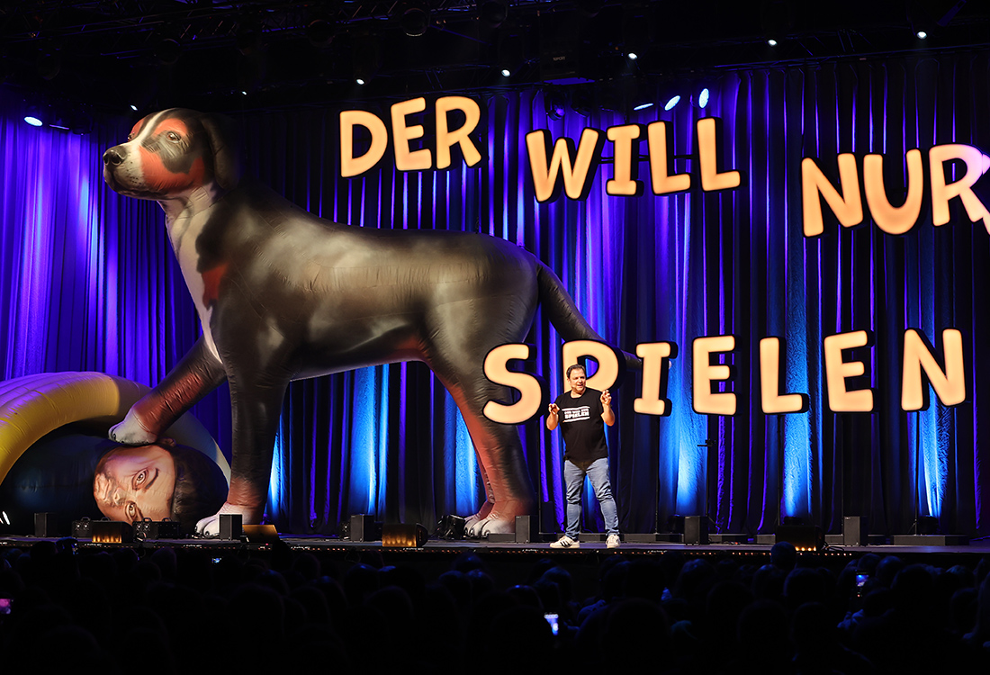 Gummersbach - Mit der Live-Show unter dem Titel "Der will nur spielen" bot der Hundetrainer Martin Rütter den rund 3.000 Zuschauern in der SCHWALBE arena fachlich fundiertes und witziges Infotainment rund um den besten Freund des Menschen.