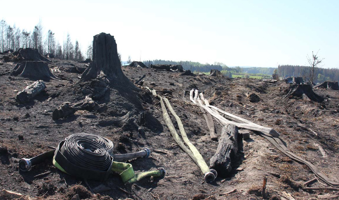 Ansonsten ist auf dem Hömericher Kopf wieder überwiegend Ruhe eingekehrt. „Bis auf ein paar Schläuche ist von uns nichts mehr da oben“, berichtet Hayer. Wie wichtig jedoch weiterhin die Kontrolle des Geländes ist, bewies der Samstagmorgen: „Um sechs Uhr haben wir wieder einzelne Glutnester gefunden, die wir ablöschen mussten.“ Auch fast 114 Stunden nach Brandausbruch schwelt es demnach immer noch vereinzelt im trockenen Waldboden. Die Feuerwehr fährt daher weiterhin Streife im verbrannten Waldgebiet. Allerdings ist man sehr zuversichtlich, dass der Einsatz am Sonntag endgültig beendet werden kann.