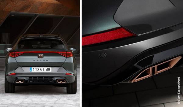 CUPRA Formentor 1.4 e-HYBRID 150 kW (204 PS) DSG-6: Kraftstoffverbrauch Benzin: kombiniert 1,5 l/100 km; Stromverbrauch kombiniert: 13,0 kWh/100 km; CO₂-Emissionen: kombiniert 34 g/km. CO₂-Effizienzklasse: A+*