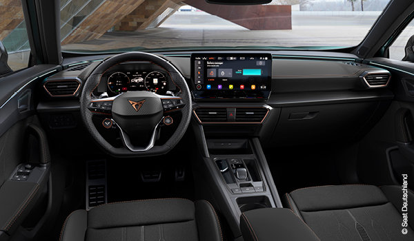 Der CUPRA Formentor e-HYBRID ist ein vollvernetztes Fahrzeug: Seine Konnektivitätsfunktionen wie Full Link einschließlich Wireless Android Auto und Wireless Apple CarPlay sowie onlinebasierte Funktionen und Dienste ermöglichen eine ständige Interaktion mit der Außenwelt. Durch die Kombination aus CUPRA CONNECT und e-HYBRID-System kann das Fahrzeug noch besser gesteuert werden, da sich weitere Funktionen – einschließlich des Batteriemanagements – von innerhalb oder außerhalb des Fahrzeugs über die App steuern lassen. Über die App ist auch die Fernsteuerung und Programmierung der Klimaanlage möglich.