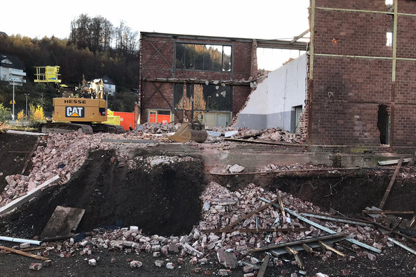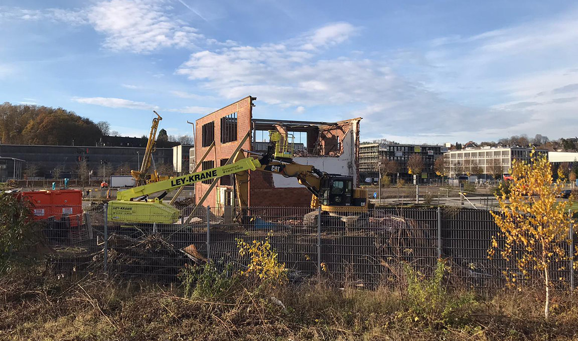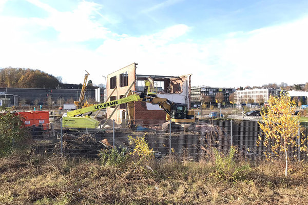 Gummersbach – Auf dem Gummersbacher Steinmüllergelände sind die Bagger am „Gasometer“ angerückt - Verzögerter Baubeginn wegen umfangreicher Planungen.