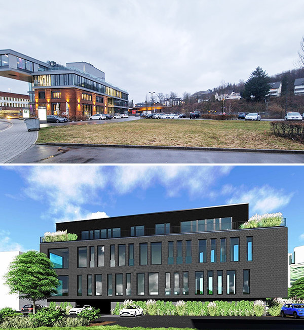 Gummersbach – Auf dem Steinmüllergelände soll im Zentrum des P+R-Parkplatzes ein neues Bürogebäude der Unternehmensgruppe Korthaus entstehen.