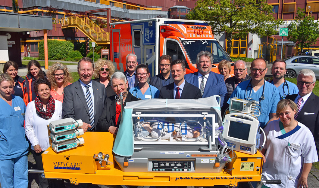 Gummersbach – Heute wurde am Kreiskrankenhaus ein neuer Transportinkubator eingeführt, die rund 70.000 € Anschaffungskosten wurden auch durch private Sponsoren zusammengetragen.