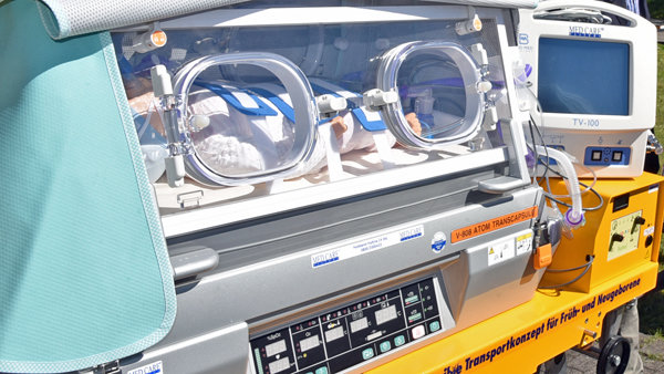 Immerhin fünf dieser Geburten gab es 2018 im Versorgungsgebiet des Kreiskrankenhauses, aber auch für die Verlegung von Patienten wird das Gerät von großem Nutzen sein. Summa summarum kalkuliert man so rund 20 Einsätze pro Jahr. „Oft möchten Eltern, die ihr Kind in anderen Kliniken zur Welt bringen, heimatnah verlegt werden. Jetzt ist der gefahrlose Transport zu uns möglich“, skizzierte der Chefarzt ein mögliches Einsatzfeld. Damit auch der Lufttransport bei Notfällen gewährleistet ist, hat man bei der sowieso schon umfangreichen technischen Ausstattung des mobilen „Brutkastens“ noch einige Tausend Euro draufgelegt, um ihn flugtauglich zu machen.