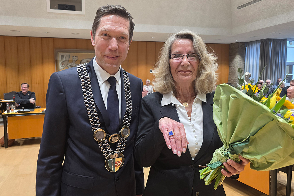 Helga Auerswald ist in Anerkennung und Würdigung ihrer besonderen Verdienste für die Stadt Gummersbach im Rahmen der Stadtratssitzung der Ehrenring der Stadt durch Bürgermeister Raoul Halding-Hoppenheit verliehen worden. Die SPD-Politikerin war 31 Jahre lang Mitglied des Stadtrates und von 2012 bis 2025 zudem 2. Stellvertretende Bürgermeisterin. Der Ehrenring ist die zweithöchste Auszeichnung, die ein Bürger erhalten kann.