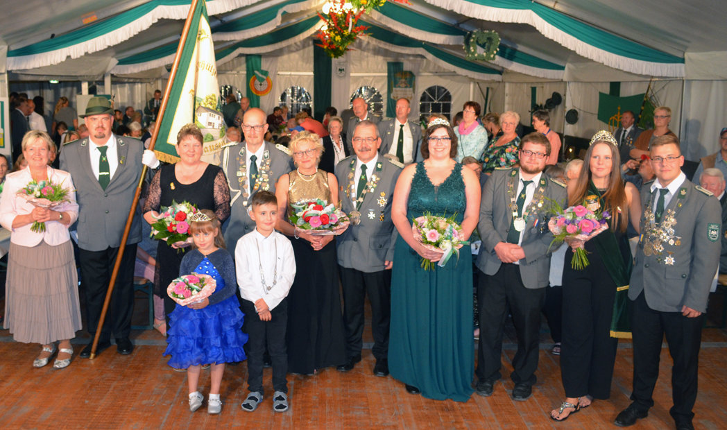 Während des Kommerses wurden langjährige und verdiente Vereinsmitglieder geehrt, zahlreiche Gastvereine besuchten das Schützenfest, dass gestern Abend beim Königsball unter musikalischer Begleitung der „Schilehrer“ aus dem Stubaital seinen Ausklang fand.