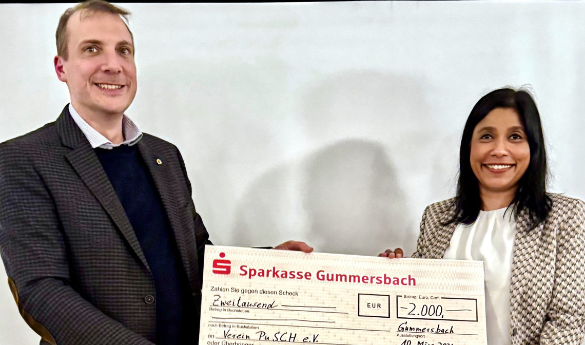 Eine Spende in Höhe von 2.000 Euro hat der Lions Club Oberberg an den Förderverein "PuSCH" übergeben. Der Betrag stammt aus dem aufgerundeten Reinerlös des Käseverkaufs auf dem Weihnachtsmarkt im vergangenen Jahr in Gummersbach. Der Präsident des Lions Club Oberberg, Dr. Martin Schäfer, überreichte den Spendenscheck an die Vorsitzende des Vereins PuSCH, Thayalini Boll. Beide betonten die Bedeutung des Engagements für junge Menschen in schwierigen Lebenssituationen.