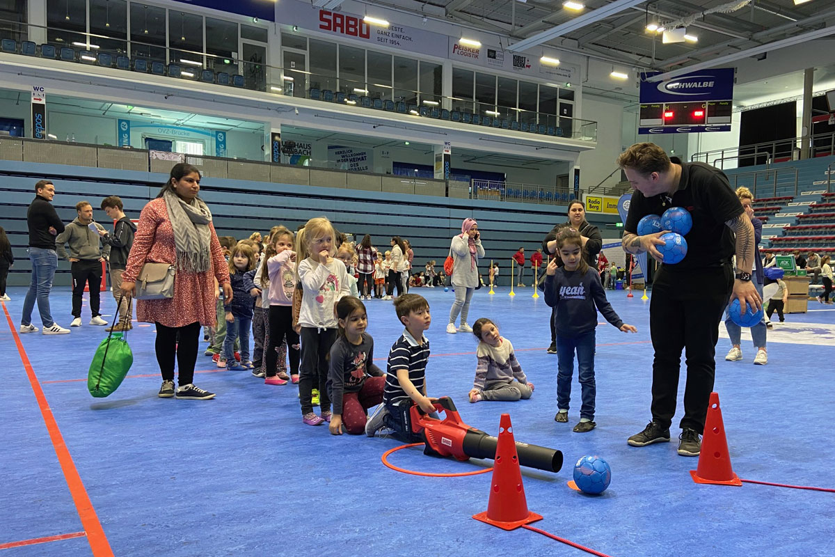 Sport verbindet und Nachhaltigkeit bedeutet Zukunft. Das haben viele Vereine und Organisationen längst erkannt. Dazu gehört auch der VfL Gummersbach, der mit seiner Handballschule für den sportlichen Nachwuchs sorgt, aber gleichzeitig auch wertvolle Ressourcen schont. Wie das in der Praxis aussieht, davon konnten sich heute rund 200 Kinder im Alter von drei bis sieben Jahren in der SCHWALBE arena überzeugen. Beim Nachhaltigkeitstag durften sie sich an acht unterschiedlichen Mitmachstationen spielerisch austoben.