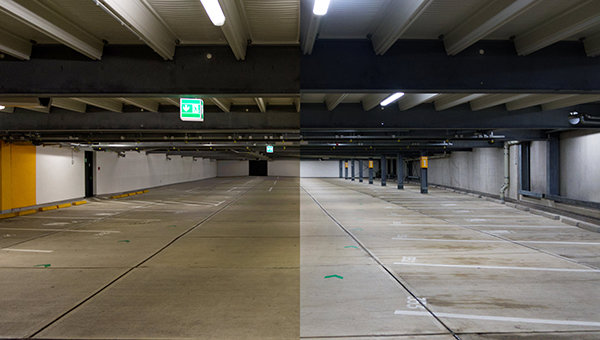 Gerade in Parkhäusern und Tiefgaragen ist eine langlebige und angenehm helle Beleuchtung sehr wichtig. Dunkle Bereiche und schwaches Licht werden als unangenehm empfunden und sind vor allem nachts und in der dunklen Jahreszeit weniger einladend, können sogar ein Sicherheitsrisiko darstellen. Im FORUM-Parkhaus wurde daher das Beleuchtungskonzept komplett überarbeitet und dank modernster LED-Technologie auch gleichzeitig hocheffizient und wartungsarm ausgelegt. Trotz höherer und gleichmäßiger Beleuchtungsstärke werden nun pro Jahr ca. 128.000 kg CO² eingespart. Somit tragen die Stadtwerke Gummersbach mit der Umrüstung wesentlich zum Klimaschutz bei.