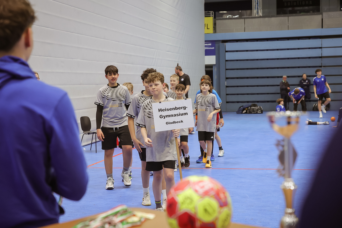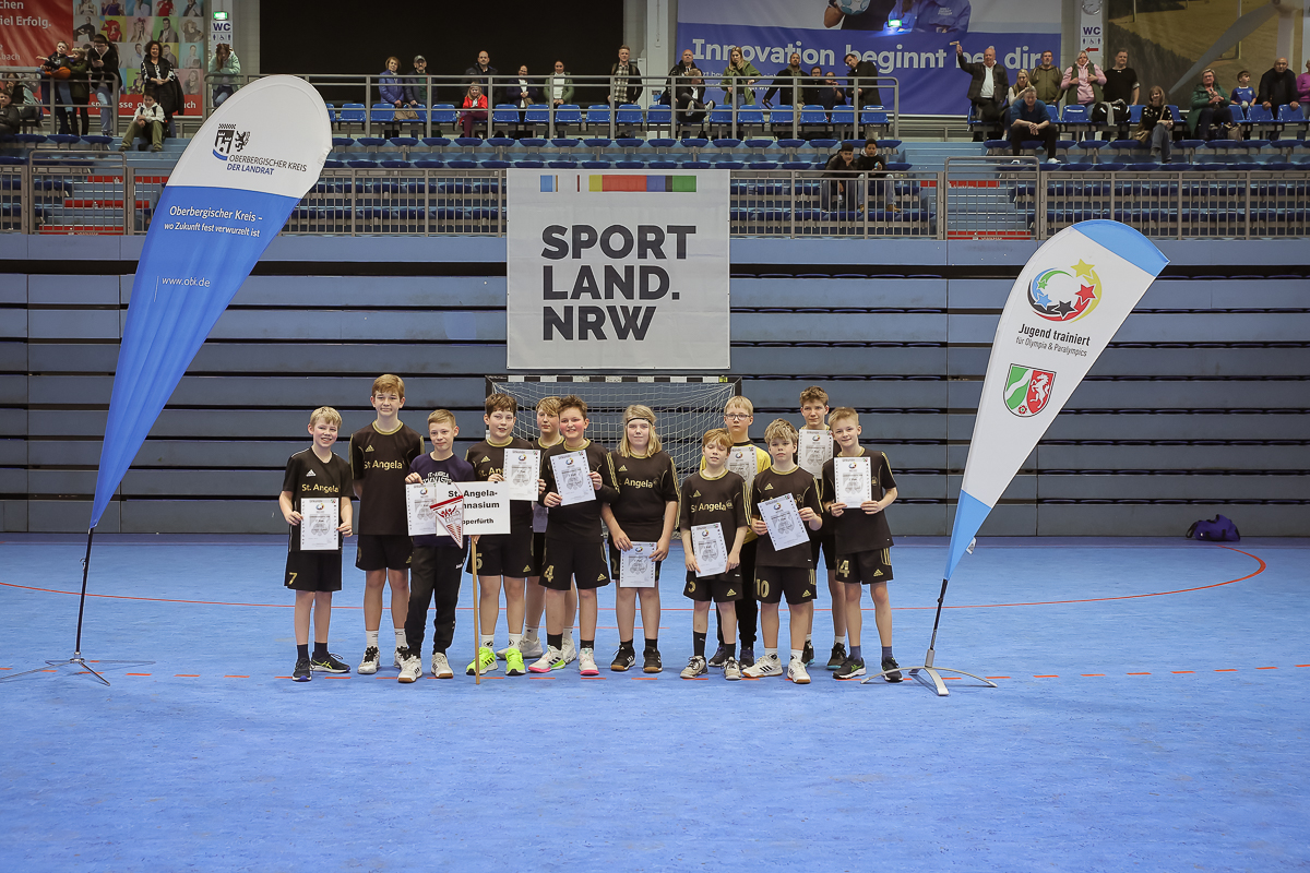 Ein wenig mehr Frust herrschte bei den Schülern des St. Angela-Gymnasiums aus Wipperfürth vor. Die Schule hatte sich erstmals mit einem Team für das Landesfinale qualifiziert, zahlte bei der Premiere allerdings doch einiges an Lehrgeld. Lehrerin Anna Denkewitz sprach trotzdem von einer tollen Erfahrung für ihre Schüler: „Aktuell herrscht vielleicht ein wenig Frust vor, aber mit einer Nacht Schlaf werden sie vielleicht schon realisieren, was sie erreicht haben. Die ganze Schulgemeinde stand hinter den Jungs.“ Schon die Anreise nach Gummersbach war etwas Besonderes: Die Schüler durften mit dem Mannschaftsbus des VfL Gummersbach anreisen.