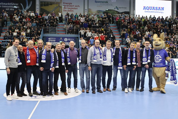 Gummersbach – Die VfL-Meisterschaft von 1991 besuchte am Wochenende nicht nur die SCHWALBE arena – Spieler werden mit Goldener Ehrennadel geehrt.