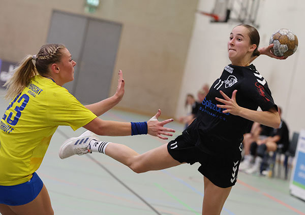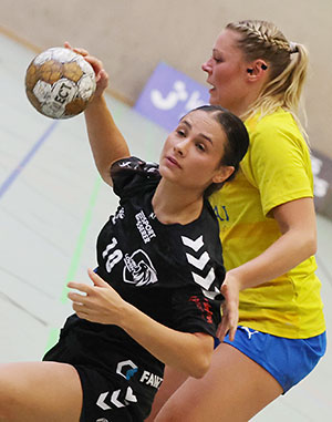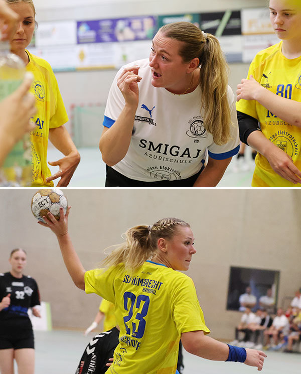 Im Duell der Aufsteiger hatte Neu-Regionalligist SSV Nümbrecht vor heimischer Kulisse den deutlich besseren Start. Die Zuschauer in der GWN-Arena, Austragungsort der drei verbleibenden Halbfinal-Spiele, sahen, wie der stark veränderte SSV-Kader (sechs Neuzugänge waren aktiv) bereits in der zehnten Minute mit 6:3 in Führung lag. Trainerin Martina Duckart war dementsprechend zufrieden mit dem Start ihrer Mannschaft: „Die Mädels waren sehr fokussiert und man hat gemerkt, dass sie das Spiel unbedingt gewinnen wollten. Das Tempospiel hat so funktioniert, wie ich mir das auch für die Saison vorstelle.“ Auch beim 4:10 (13.) schien noch alles im Sinne der Nümbrechter zu laufen, doch die Löwen schafften noch vor der Pause ein Aufbäumen und verkürzten bis zum Ende der zwanzigminütigen Hälfte auf 8:11. „Nachdem Nümbrecht unsere offensive Abwehr sehr gut bespielt hat, haben wir auf die 6:0 umgestellt und uns so besser reingekämpft“, berichtete HBD-Coach Dennis Herrmann.