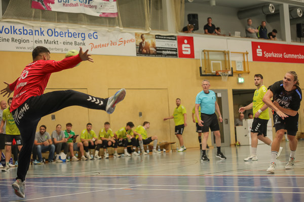 Besonders vor der Pause hatten beide Abwehrreihen dominiert. Über 2:3 (10.), 6:4 (17.) und 8:8 (25.) waren es die Paraden von HC-Keeper Elnoamany, die im ersten Durchgang den Unterschied machten. Nach dem Seitenwechsel kippte die Partie, auch weil der nun eingewechselte Alexander Orth für Nümbrecht einige Bälle parierte. Über 15:13 (36.) kippte die Partie zum 18:20 (45.). Nun war es vor allem Julian Mayer, der mit seinen Toren dafür sorgte, dass der Oberligist sich nicht absetzte.