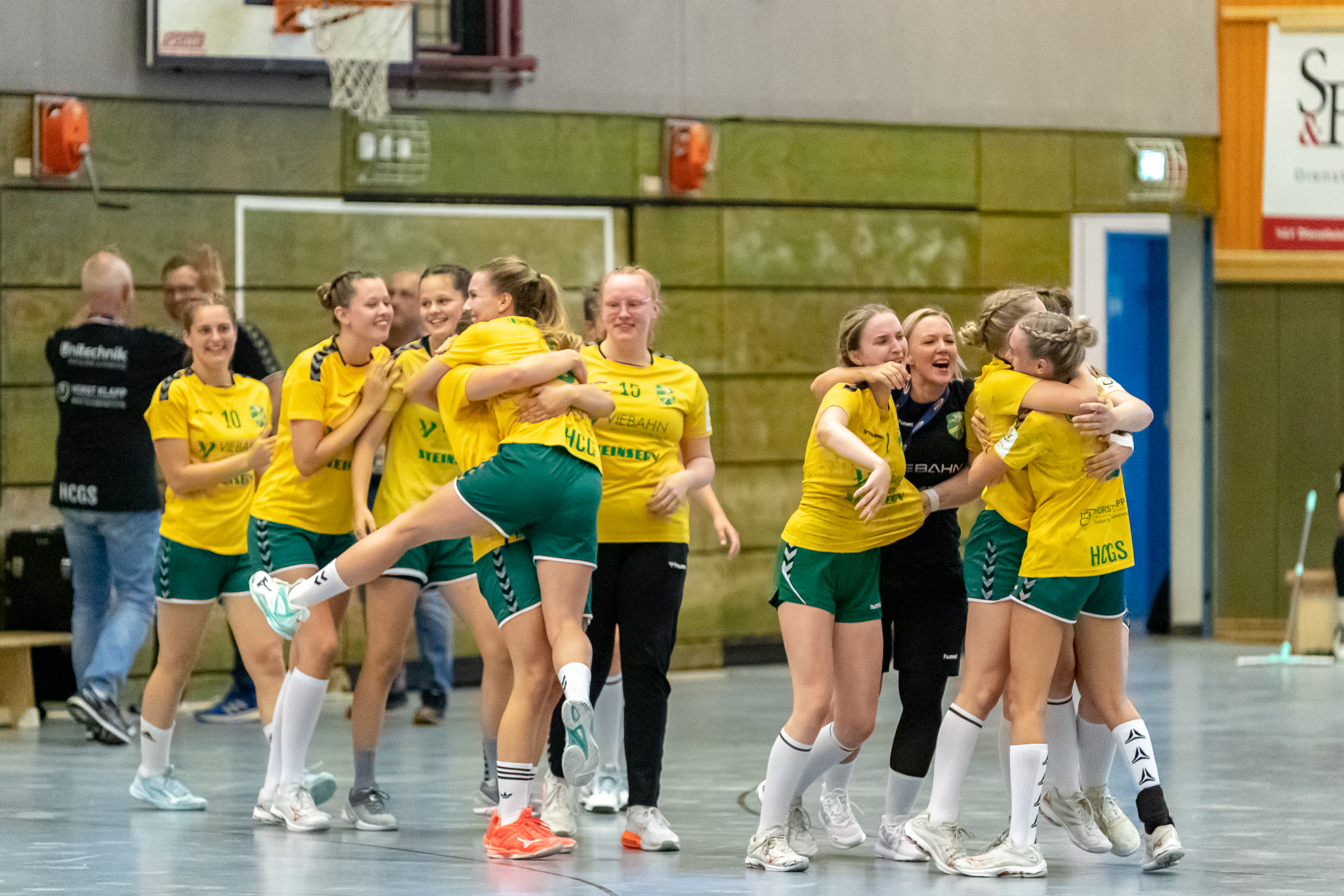 Beim 27:27 (55.) wackelte das HC-Kartenhaus bedenklich, ehe die treffsichere Zoe Viebahn endlich den Bann brach. In der Schlussphase gelang es immer wieder, Schmalenbach freizuspielen. Trotzdem blieb es ein Zittern bis zum Schluss: Den erlösenden Treffer erzielte Blumberg acht Sekunden vor dem Ende. Die Gäste zeigten sich im Anschluss als eher schlechte Verlierer und kündigten einen Einspruch an, da der HC-Hallensprecher keine Neutralität gezeigt habe und die Schiedsrichter vermeintlich die Verletzten-Regel missachtet hätten. „In der Situation, die von Königsdorf bemängelt wird, gab es aber überhaupt keine Unterbrechung“, blickt Remmers dem allerdings gelassen entgegen.