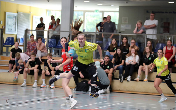 Nach dem Seitenwechsel diktierte der Oberligist dann das Geschehen. Über 10:20 (39.) war der Sieg schließlich nur noch eine Frage der Höhe. Trotzdem zogen beide Trainerinnen ein positives Fazit. „Nachher war die Luft zwar raus, aber wir können mitnehmen, dass wir 30 Minuten lang gegen einen Oberligisten gut mitgehalten haben“, fand Bartossek. Duckart sprach hingegen von 40 Minuten gutem Handball ihrer Mannschaft: „Nach der Niederlage am Mittwoch herrschte vielleicht ein wenig Verunsicherung. Ich bin froh, dass wir wieder befreiter aufgespielt haben und sich die Mädels für ihre Trainingsleistungen belohnt haben.“ Aus einer geschlossenen Mannschaftsleistung hob sie neben Torhüterin Meissner noch Franziska Arnds, Sandra Fischer und Laura Harscheid hervor.