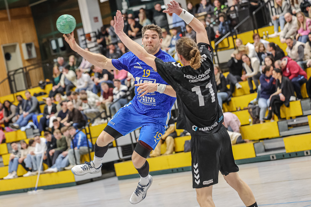 Oberberg - Während Nümbrecht nur noch zwei Siege zum Regionalligaaufstieg fehlen, punktet die Konkurrenz der Löwen im Abstiegskampf - Das Derby dominieren die Nümbrechter von hinten bis vorne - Die Handball-Oberliga wird präsentiert von ‚Sportsbar Lutter‘.