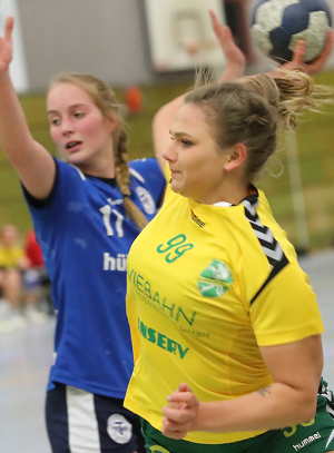 Tatsächlich kamen die Hausherrinnen in den ersten 30 Minuten nie in ihr obligatorisches Tempospiel und verbuchten gerade mal neun mickrige Törchen. Nur gut, dass man nach Wiederbeginn den gewohnten Rhythmus zumindest halbwegs fand und auf Augenhöhe mit dem gleichfalls personell geschwächten Gegner blieb.