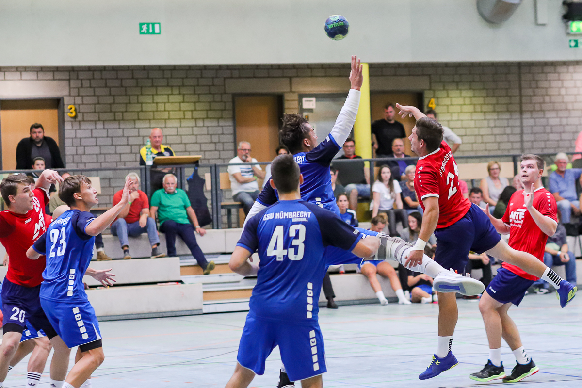 Tief durchatmen hieß es im Nümbrechter Lager nach dem Arbeitssieg im Derby gegen den TV Bergneustadt. „Wir hatten etliche Gelegenheiten, das Spiel vorzuentscheiden und müssen am Ende sogar froh sein, beide Punkte zu haben“, atmete SSV-Coach Manuel Seinsche nach dem Abpfiff tief durch. Auf der anderen Seite haderte TVB-Trainer Tobias Uding mit dem Schicksal. Denn vier Minuten vor Schluss hatte Marcel Neese per Tempogegenstoß die mögliche 21:20-Führung auf der Hand, fand in Philip Winkler aber seinen Meister. „Schade, dass dieser Wurf nicht drin war, ein Remis wäre moralisch auf jeden Fall verdient gewesen“, meinte Uding.