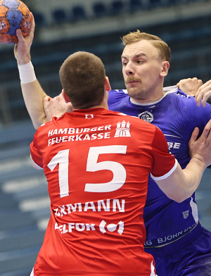 Zur Pause war beim 12:11 zugunsten der Gastgeber und dem zerfahrenen Spielverlauf denn auch keineswegs seriös vorauszusagen, wer später die Punkte einsammeln würde. Beim 19:20 (44.) schien der HSV das Spiel auf seine Seiten zu ziehen. Dann aber konterte der VfL mit einem 4:0-Lauf zum 23:20 (52.). Diesen Drei-Treffer-Bonus behauptete Blau-Weiß bis zur 57. Minute (25:22), ehe es in den finalen Sekunden doch noch einmal eng wurde.