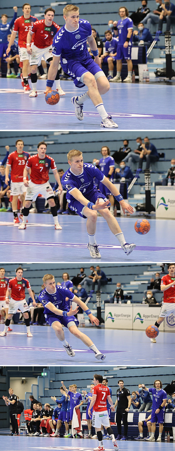Als sich die Gummersbacher bis zur 17. Minute freilich ein Drei-Treffer-Polster erwirtschaftet hatten (8:5), war man zumindest ergebnistechnisch auf der richtigen Fährte. Entscheidenden Anteil an dieser Entwicklung hatte VfL-Keeper Matthias Puhle, der in den gesamten 60 Minuten immer wieder Hand, Fuß oder auch Schulter beziehungsweise Hüfte an den Ball brachte. Zudem entpuppte sich Timm Schneider als echter Kapitän, der vorne als Spielmacher und Torschütze glänzte und hinten den teilweise klapprigen Abwehrladen zusammenhielt. Und das, obwohl er schon in der Anfangsphase nach Ansicht der Schiedsrichter die Grenzen korrekter Abwehrarbeit mehrfach überschritten hatte, zu grob zu Werke ging und dafür gleich zwei zeitige Zwangspausen abbrummen musste.