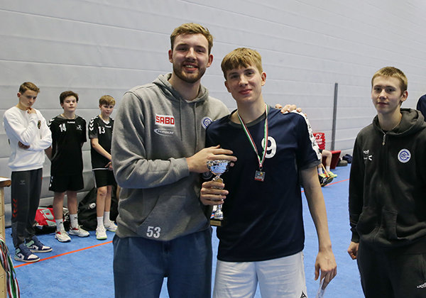 Die Siegerehrung übernahmen wie am Vortag der stellvertretende Landrat Dr. Friedrich Wilke, Oberbergs Handballchef Udo Kolpe und VfL-Spieler Bruno Eickhoff. Der hatte 2020 zuletzt das Ticket nach Berlin mit einer oberbergischen Schulmannschaft gebucht. Das Bundesfinale war damals allerdings der Pandemie zum Opfer gefallen.