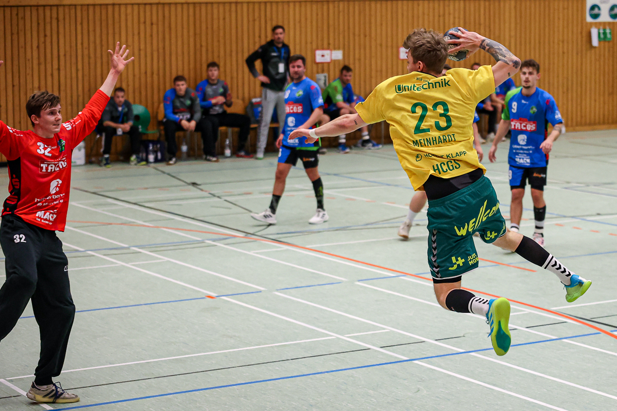 [Zu viele Würfe aus dem Rückraum trafen nicht ihr Ziel, auch wenn Lukas Bader hier einnetzt.]