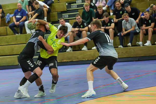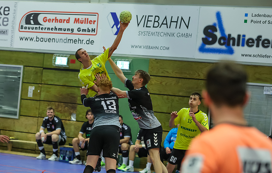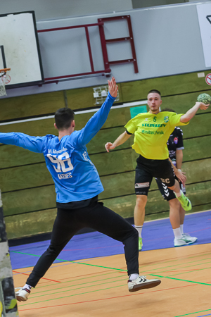 [Remscheids Keeper Linus Mathes kochte die HC-Außen (hier Felix Maier) mit seinen Paraden ab.]