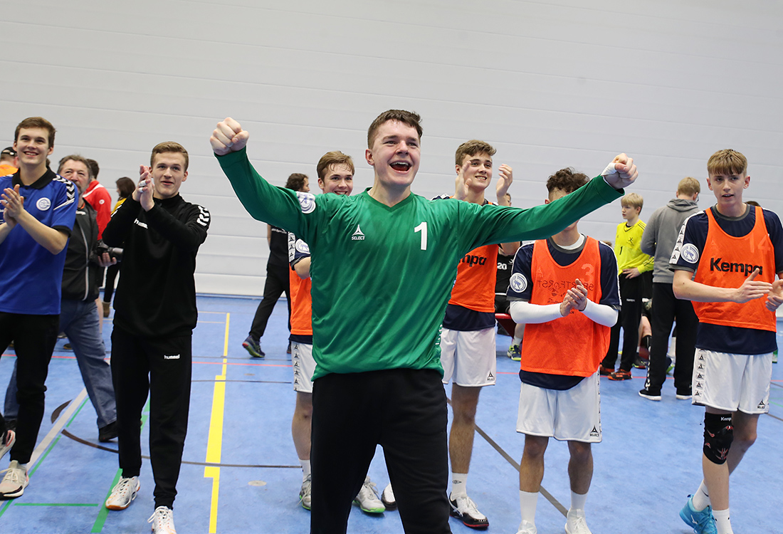 Insgesamt verlief das Turnier in der SCHWALBE arena wie schon am Vortag bei den Mädchen äußerst harmonisch. Wettkampfleiter Jürgen Thoenes sprach von einem „sehr guten Turnier“ und dankte den zahlreichen Helfern, Organisatoren und Schiedsrichtern. Für die nötige Stimmung im Gummersbacher Handball-Tempel sorgte – wie in den Vorjahren – die Marienheider Trommel-Gruppe: Etwa 350 Zuschauer verfolgten die Spiele. Die Siegerehrung wurde von Oberbergs Handballchef Udo Kolpe mit Thomas Gunkel, Vorsitzender des Schulausschusses für den Schulsport im Oberbergischen Kreis, durchgeführt. Unterstützt wurden sie dabei von den beiden VfL-Profis Alexander Hermann und Fynn Herzig.