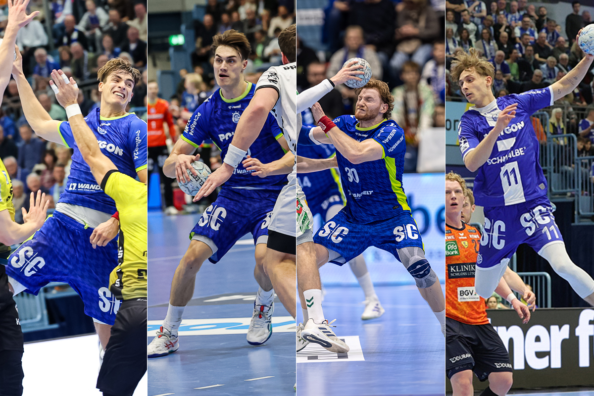 Rückraum links: Marko Grgic (SG Flensburg-Handewitt), Tom Kiesler (VfL Gummersbach), Matthes Langhoff (Füchse Berlin), Miro Schluroff (VfL Gummersbach)