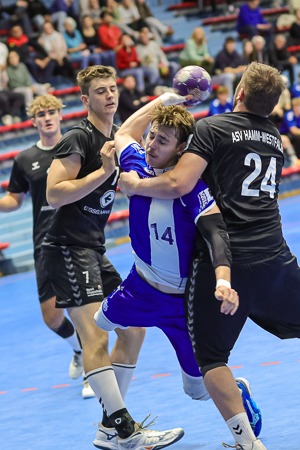 Am vierten Spieltag holt die A-Jugend des VfL Gummersbach endlich den ersten Sieg. Zumindest den ersten, der auch grünen Tisch Bestand hat. Das Match gegen Hamm war allerings nur in der Anfangsviertelstunde ausgeglichen, in der die Gäste das Spiel mit langen Angriffen offenhielt. Beim 9:6 durch den erneut treffsicheren Tom Koschek ging das Team von Trainerduo Goncalo Miranda/Jan Schwenzfeier erstmals mit drei Toren in Führung.