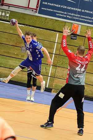 Doch die Gummersbacher ließen sich nicht von ihrem Pfad abbringen. Durch eine geschlossene Mannschaftsleitung lagen sie sogar mit 9:5 (17.) in Führung. Als Malte Petersen kurz darauf eine Zeitstrafe kassierte und Tom Koschek in Unterzahl einen Strafwurf nicht verwertete, kam der TVE wieder in Schlagdistanz. Über 10:10 und 13:13 nutzten die Westfalen die Chance, zur Pause in Führung zu gehen.