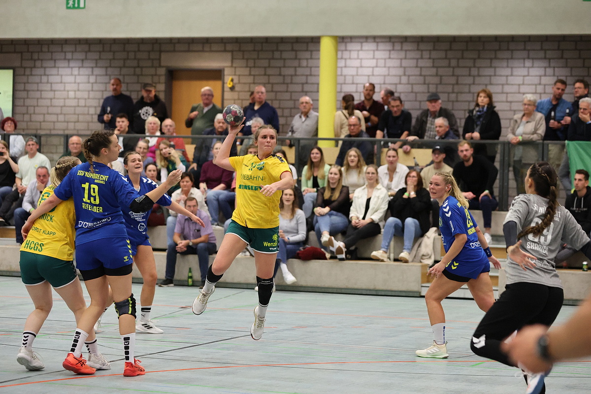 Doch der Reihe nach: Der im bisherigen Saisonverlauf wenig durchschlagkräftige SSV überrumpelte den favorisierten Lokalrivalen mit einem Turbostart (4:1/6.) und blieb auch nach dem ersten HC-Ausgleich (5:5/11.) auf Augenhöhe. In Folge sahen die Zuschauer in der GWN-Arena bis zur Halbzeit eine absolut ausgeglichene Partie. Nach dem 11:12 zur Pause schnupperten die SSV-Ladies kurz nach Wiederanwurf sogar erneut an der Sensation (14:13/34.).
