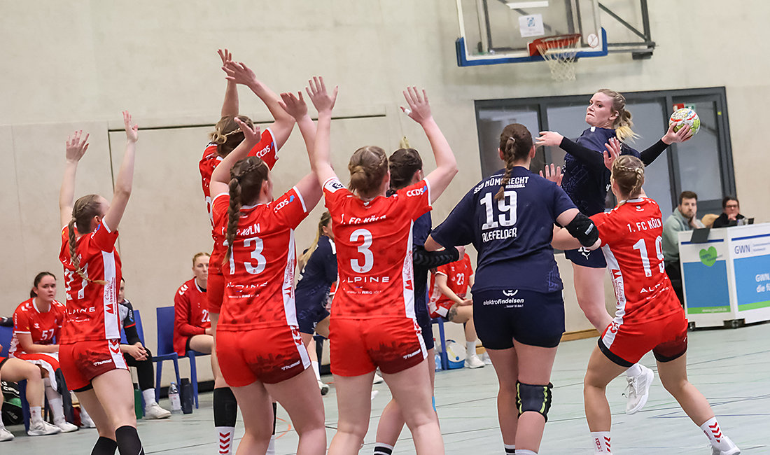 Tatsächlich boten die Gastgeberinnen dem bis Samstag verlustpunktfreien und zudem durch einige Handballerinnen aus der FC-Drittligamannschaft verstärkten Tabellenführer nicht nur einen tollen Fight, sondern erarbeiteten sich bis zur25. Minute einen 15:12-Vorteil. Und dies, obgleich man personell arg gebeutelt und lediglich mit einem Rumpfkader (neun Spielerinnen) in das Match gehen konnte.