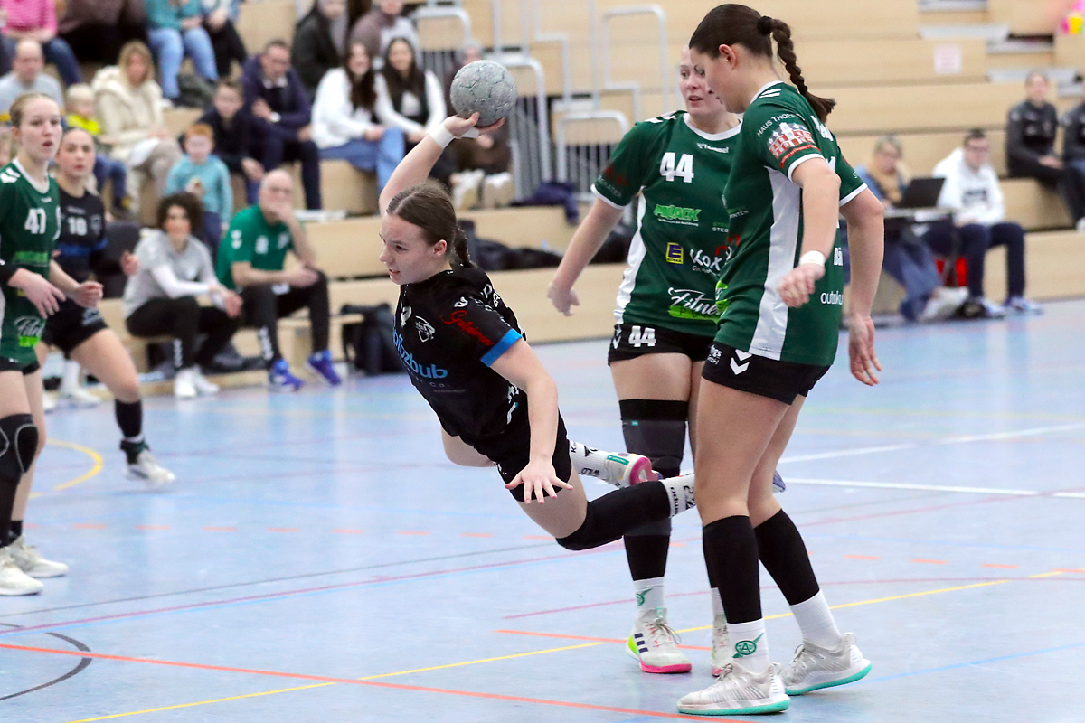 Nachdem die HSG-Mädchen das Hinspiel noch knapp mit einem Tor verloren hatten, machten sie beim Rückspiel in Königsdorf von Beginn an klar, dass sich ein solches Ergebnis nicht wiederholen soll. Von Anfang an dominierten die Gäste das Geschehen und hatten zur Pause bereits eine Fünf-Tore-Führung herausgespielt. Das Trainergespann Jennifer und Michael Debus hatte entsprechend wenig zu kritisieren. Auch nach dem Seitenwechsel wurde der Vorsprung kontinuierlich ausgebaut, sodass bereits beim 6:16 (37.) die Zehn-Tore-Grenze fiel und die Oberbergerinnen munter durchwechseln konnten.