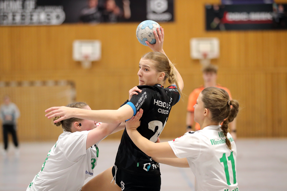Mit gerade einmal zwei Auswechselspielerinnen empfingen die HBD Löwen Oberberg den VfL Rheinhausen zum letzten Hinrundenspiel. Der durch Verletzungen und Krankheiten geschröpfte Kader benötigte gegen den Tabellenvorletzten viel Geduld und eine kompakte Abwehrarbeit, um dem Spiel schließlich doch den Stempel aufzudrücken. Über 4:4 (9.) und 9:9 (21.) gelang erst nach dem 11:10 (25.) noch ein 5:0-Lauf, sodass zur Pause doch eine beruhigende Führung auf der Anzeigentafel stand.