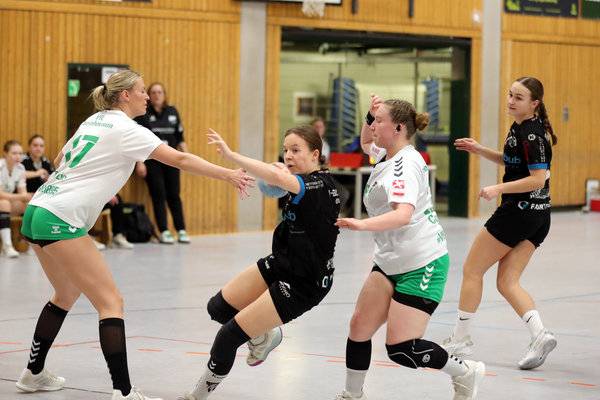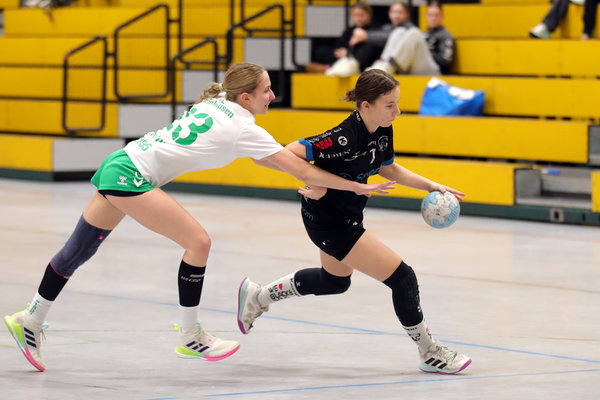 Die Bonner JSG durfte sich noch über eine frühe 3:1-Führung (4.) freuen, anschließend übernahmen aber die Oberbergerinnen das Kommando. Schon beim 13:3 (16.) hatten sich die Spielgemeinschaft aus Marienheide mit einem Zwölf-Tore-Lauf ein komfortables Polster erspielt, das auch bis zur Pause gehalten wurde. Obwohl die Gastgeberinnen weiterhin auf Spielmacherin Enya Breier und Kreisläuferin Sofya Slesarskaya verzichten mussten, zeigte der kleine HSG-Kader den gewohnten Tempohandball. Mit ihrer offenen 3:2:1-Deckung zogen die Oberbergerinnen den Gästen frühzeitig den Zahn.