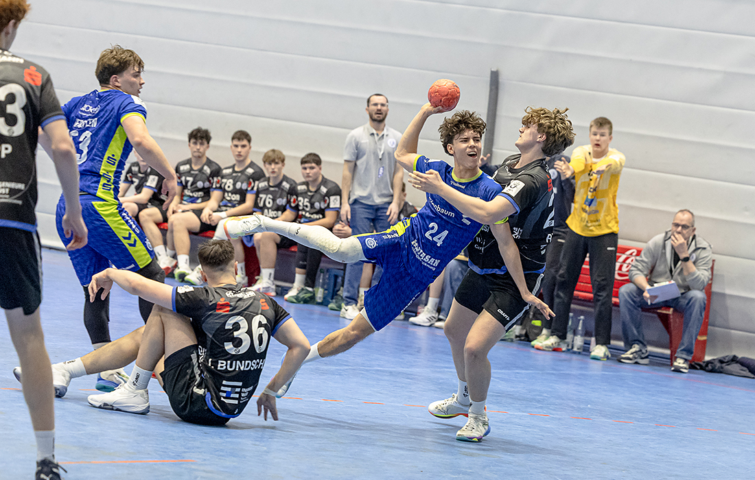 Gummersbachs U17 hat weiterhin beste Chancen ins Viertelfinale der Deutschen Meisterschaft einzuziehen. Das Team von Maciej Dmytruszynski besiegte in einem 78-Tore-Spektakel das Nachwuchsteam des TV Großwallstadt. Zwei Spieltage vor Ende der Hauptrunde liegen die Oberberger damit weiter auf Platz zwei, einen Punkt vor dem direkten Verfolger HSG Rodgau Nieder-Roden, der mit einem 30:27-Auswärtssieg bei Bayer Dormagen ebenfalls seine Hausaufgaben im Kampf um eins der beiden Viertelfinal-Tickets erledigte. Am kommenden Samstag kommt es in Hessen zum direkten Duell, in dem Gummersbach bereits alles klar machen könnte.