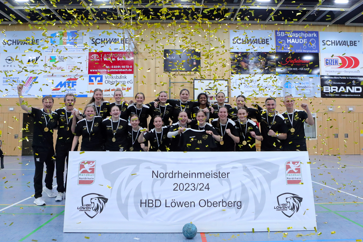 Der 36:17-Heimsieg am letzten Spieltag war der krönende Abschluss einer nahezu perfekten Saison. Die U17 der HBD Löwen Oberberg hat die Saison ungeschlagen beendet, den einzigen Punkt gab der Nordrheinmeister bereits am ersten Spieltag gegen Bayer Leverkusen ab und dominierte anschließend die Liga. Das Team wurde in der gut gefüllten Burstenhalle von zahlreichen Fans gebührend gefeiert. Vom Verein gab es eine interne kleine Meisterfeier, die offizielle Ehrung durch den Verband findet am 3. April im Rahmen des Länderspiels der weiblichen U18 gegen Frankreich in Bergneustadt (19 Uhr) statt.