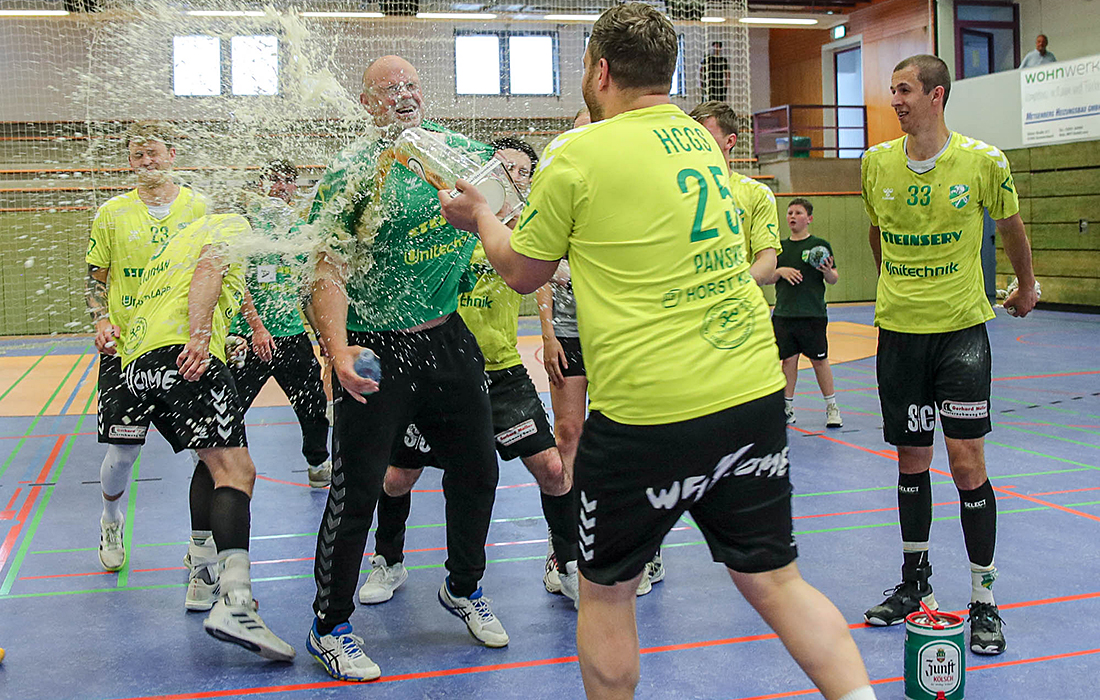 „Die Bierdusche habe ich heute ganz besonders genossen“, meinte HC-Trainer Markus Murfuni nach dem Schlusspfiff. Die Wucht der Bierdusche von Kreisläufer Florian Panske hätte es im Profifußball wahrscheinlich sogar in jeden Jahresrückblick geschafft. SSV-Coach Manuel Seinsche blieb dagegen nur die Rolle des fairen Verlierers: „Für uns war heute mehr drin, aber am Ende hat man die Klasse des Gegners gesehen. Sie waren im entscheidenden Moment einfach cooler als wir und haben verdient gewonnen.“