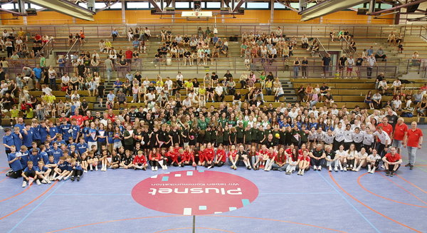 [Foto: Michael Kleinjung ---- Während der beiden Endspiele wurden die diesjährigen Meistermannschaft des Handballkreis Oberberg geehrt. Über den Tag kamen nach Angaben der Verantwortlichen trotz stahlenden Sonnenscheins erneut zwischen 600 und 800 Menschen in die Eugen-Haas-Halle.]