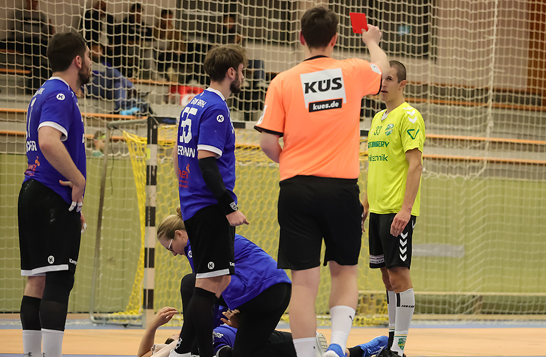 Eine Viertelstunde war gespielt als die Handballer des HC Gelpe/Strombach den nächsten Nackenschlag verdauen mussten. Der ohnehin schon völlig geschröpfte Rückraum, in dem gleich vier Spieler fehlten, wurde weiter dezimiert: Mit Julian Mayer sah der letzte gesunde Shooter nach einem Foul an Nils Bullerjahn die rote Karte. „Ab da wusste ich, dass das heute eine richtig harte Aufgabe wird“, meinte HC-Trainer Markus Murfuni unmittelbar nach dem Schlusspfiff.