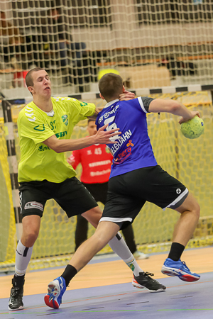 Schon bis zum 7:5 (15.) war Gelpe/Strombach die etwas aktivere Mannschaft. Die Disqualifikation Mayers sorgte zwar für ein kurzes Loch, mit dem 8:7 (19.) von Malte Meinhardt nahm der HC-Zug aber wieder Fahrt auf und machte aus einem zwischenzeitlichen 10:10 (25.) eine 14:10-Pausenführung. Ein Vorsprung, von dem die Gastgeber nach dem Seitenwechsel lange zehrten. Über 20:17 (42.) und 22:20 (45.) kamen die Gäste aber zum 23:23-Ausgleich und gingen kurz darauf sogar erstmals seit der Anfangsphase durch das Tor von Luca Bohrmann (52.) wieder in Front.