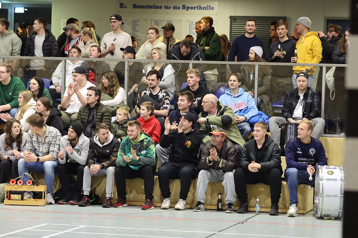 [Fotos: Peter Notbohm --- Mannschaft und Fans des CVJM feierten die Revanche für die Hinspielschmach nach dem Spiel ausgelassen.]